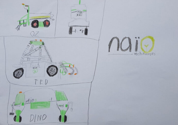 Pour notre plus grand bonheur, Naïo Technologies franchit peu à peu les frontières, qu’elles soient géographiques ou générationnelles. C’est donc avec une joie immense que nous avons reçu la semaine dernière le dessin des robots Naio de Zsombor, un petit garçon hongrois de 9 ans.