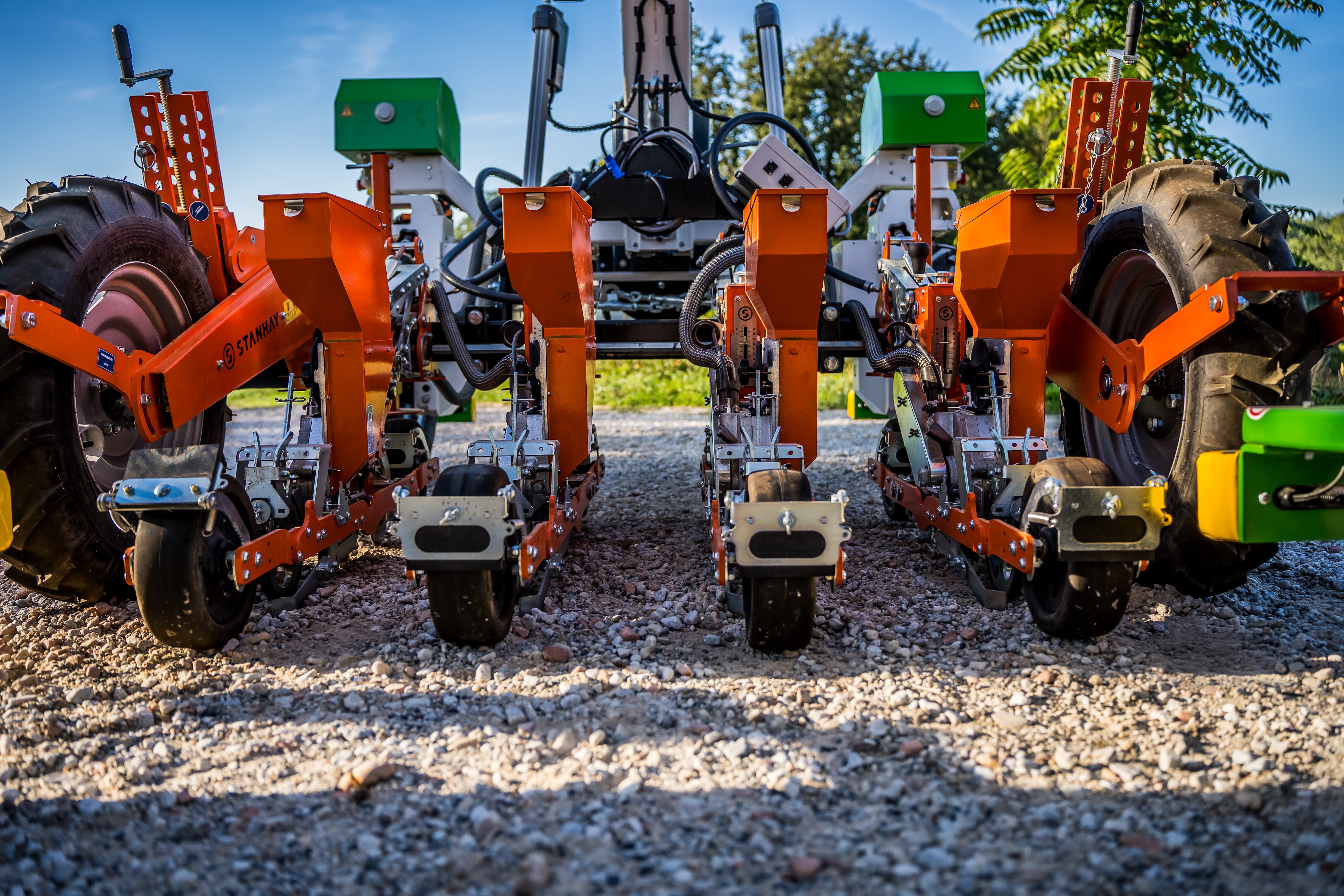 The Orio robot can now be equipped with a Kult hoe, a Treffler harrow, and a precision pneumatic planter Stanhay (for large vegetable farms and row-crops). The vineyard straddler Ted now receives EVOLT Boisselet electric interrows.